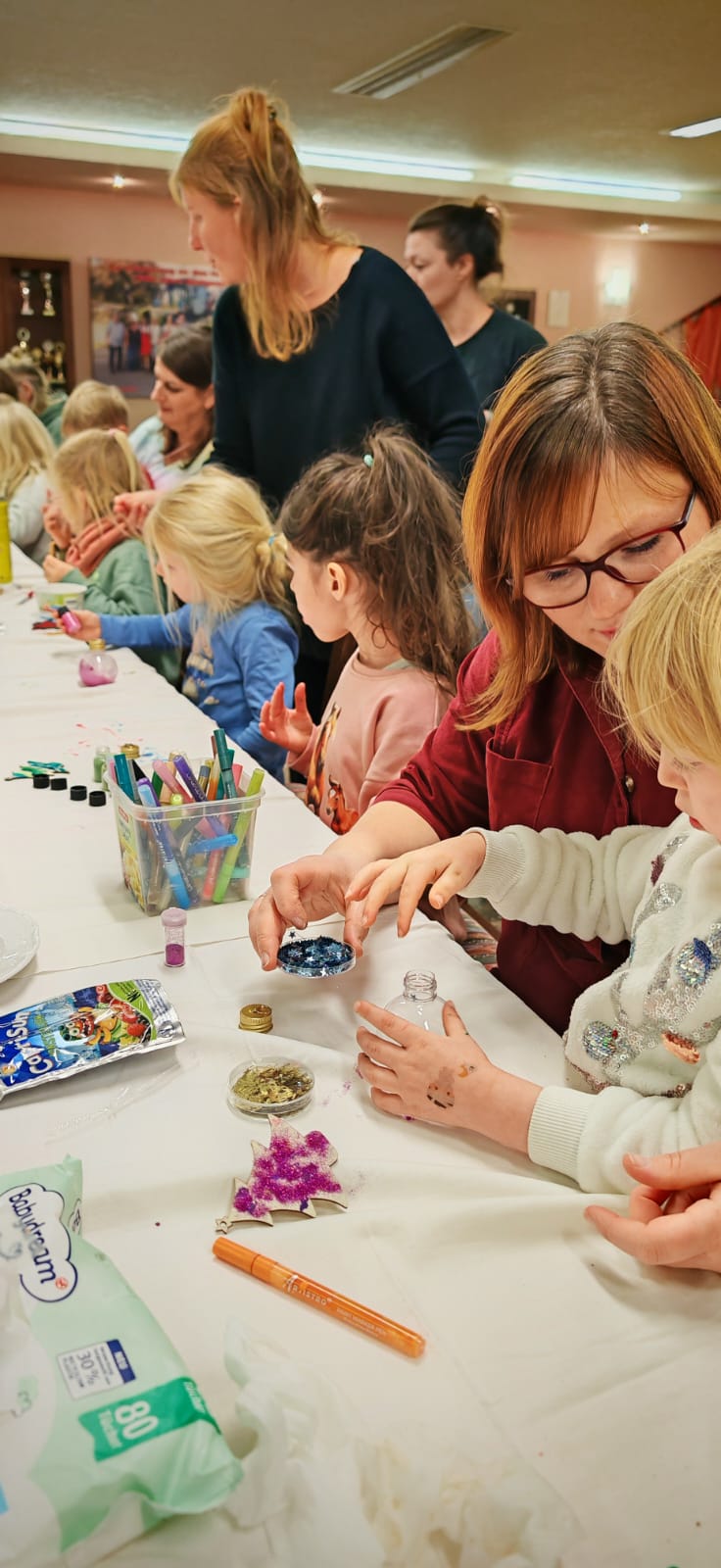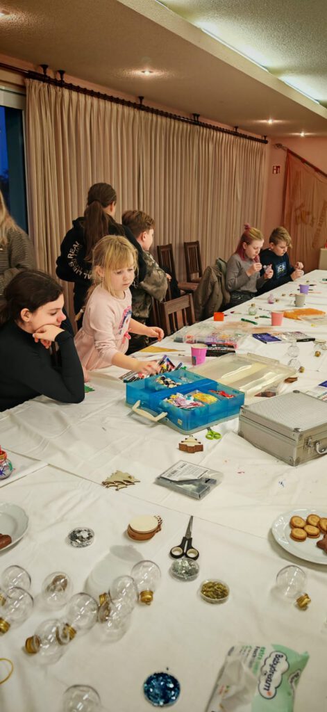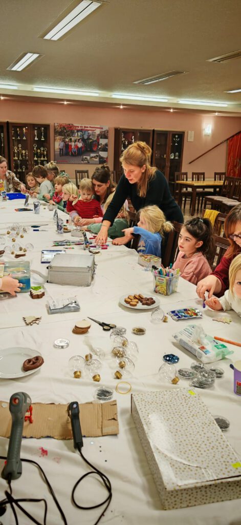 22.12.2024 Unsere Kleinsten basteln zusammen mit dem Sonnenkind e.V. den Weihnachtsbaumschmuck für unser Tannenbäumchen auf dem Dorfplatz.